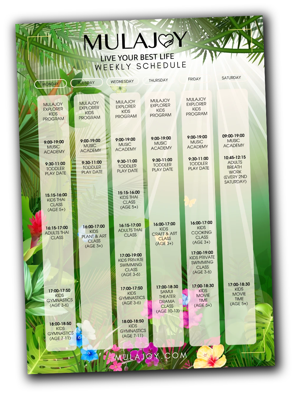 Welcome to MULAJOY, a vibrant space designed to inspire and support children and families in their physical, emotional, and creative development. Our center offers a diverse range of classes tailored to foster skills and self-expression in young minds.