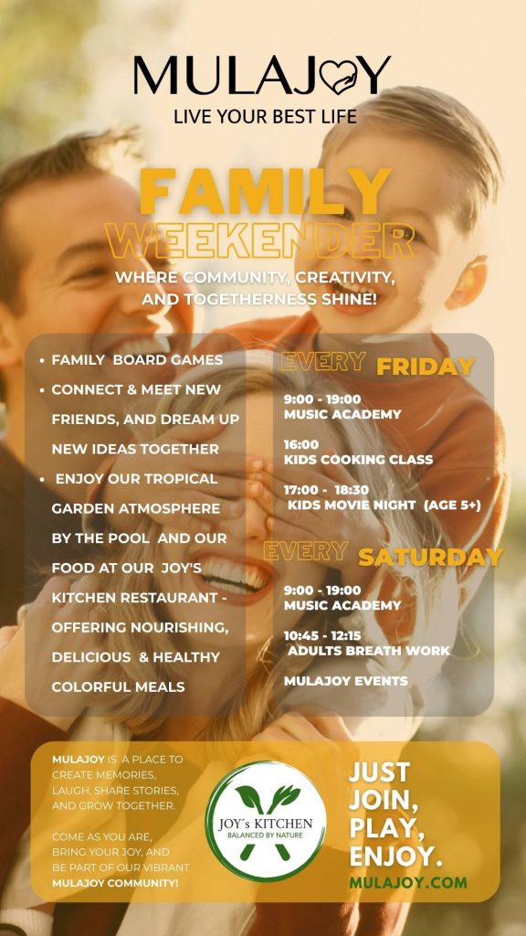 Surrounded by lush greenery, warm light and open hearts, MULAJOY invites families, children and adults to slow down, connect deeply, and grow together. Here, people sit in harmony, share meaningful conversations, explore inspiring ideas, and allow their creativity to flow freely.
